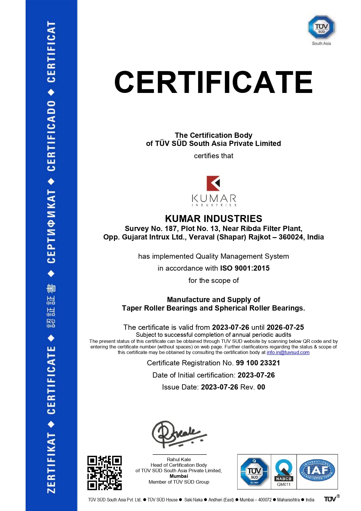 At Kumar Industries, we are proud of our commitment to quality and our reputation as a trusted bearing manufacturer. We believe that our focus on quality is what sets us apart from our competitors and helps us to build long-lasting relationships with our customers.